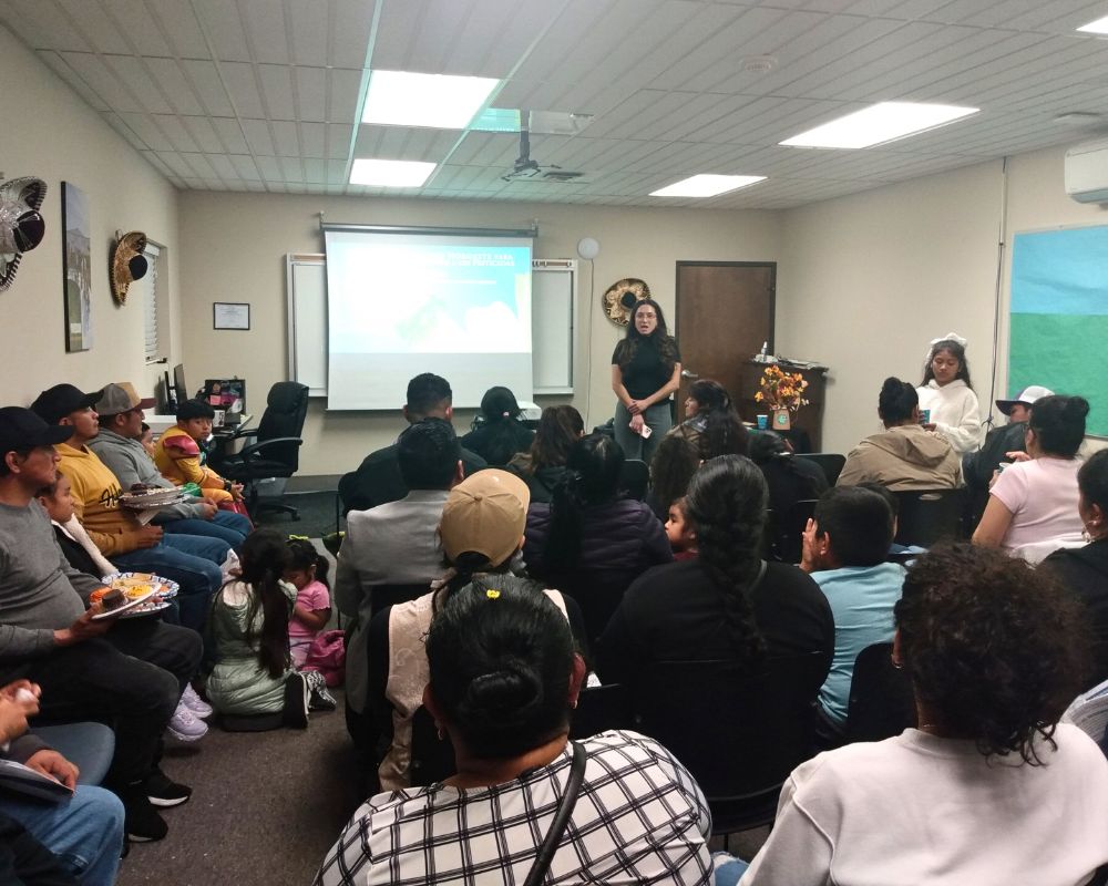 After the educational workshops, we celebrated with food, drinks, raffles, and educational gifts for children, including coloring pages and materials in two languages about pesticides, the climate crisis, and community health.